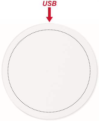 Trådlös laddare. Anslut enheten till din dator eller en stickkontakt, lägg mobilen på den och låt den ladda. Utgång: DC5V/1A (5W). Kompatibel med de senaste smartmobilerna, iPhone® 8, X och nyare. Med digital märkning i fullfärg exponerar du ditt budskap varje dag för mottagaren.