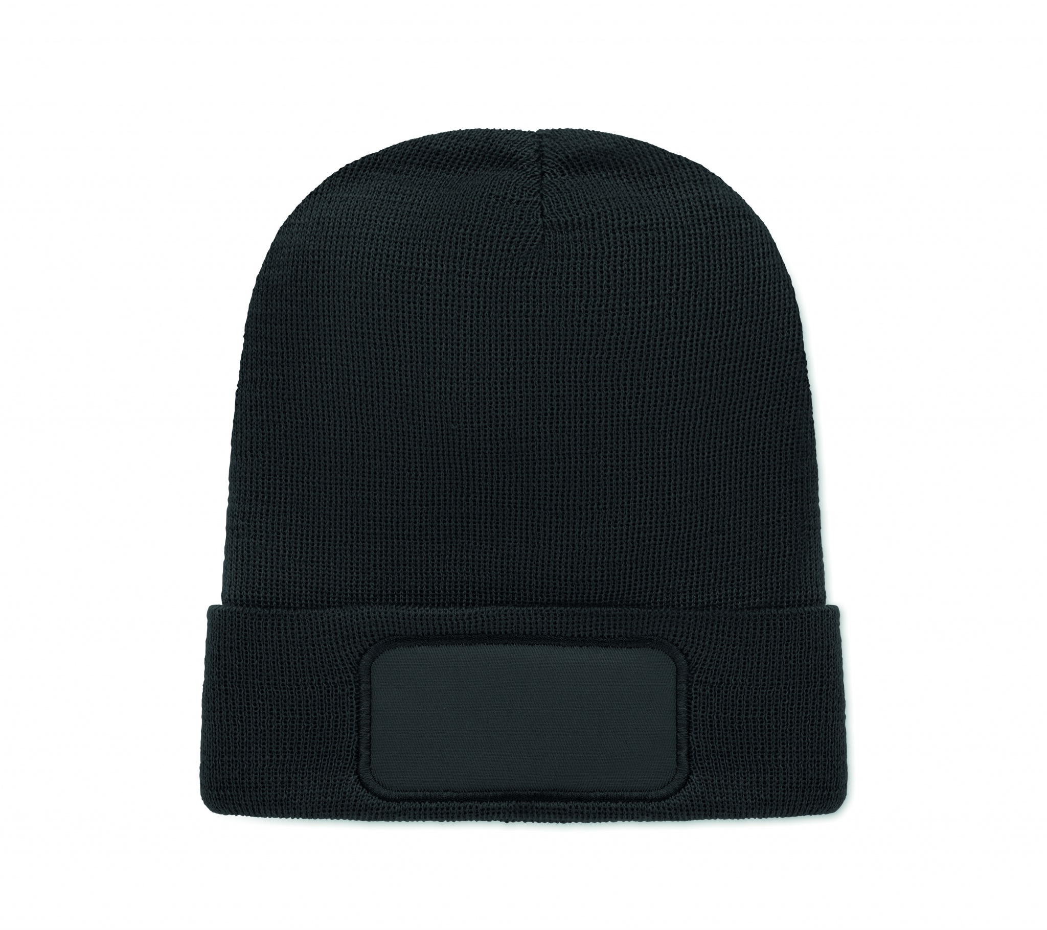 Unisexstickad mössa i mjuk stretchig RPET-polyester med mudd och lapp.