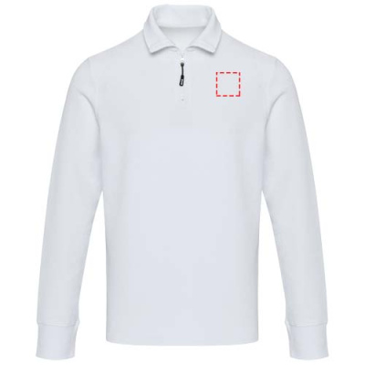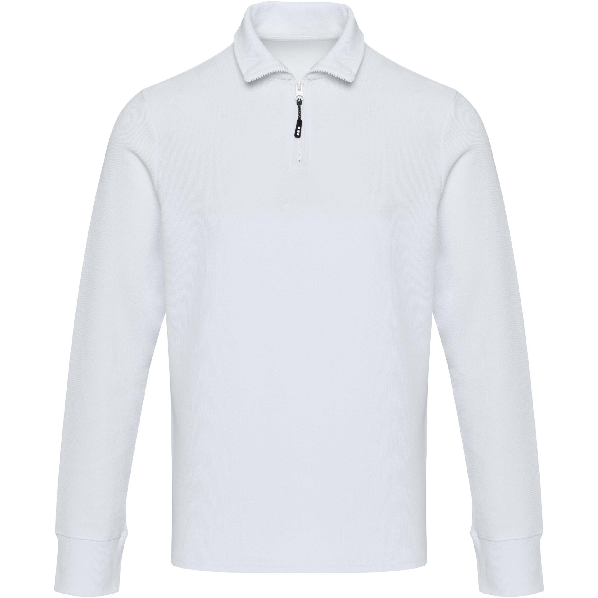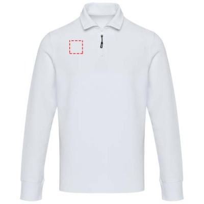 Zeus långärmad unisex piké med halv dragkedja, Vit